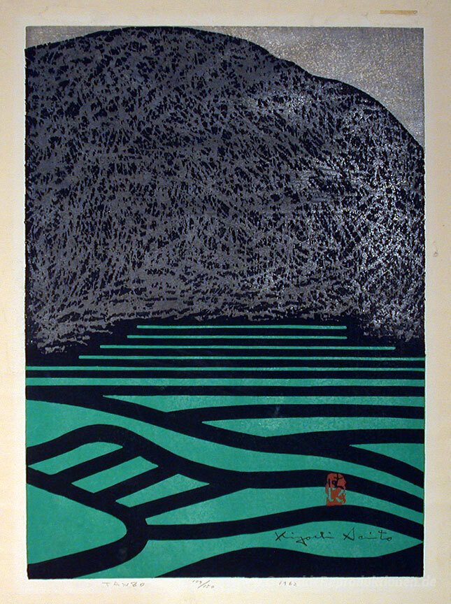 Wir bieten Ihnen eine handgefertigte Reproduktion auf Leinwand des berühmten Kunstwerks 'Tanbo' von Kiyoshi Saito, aus dem Reproduktionsmuseum.