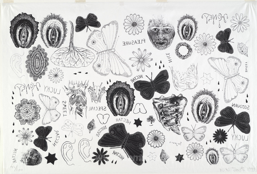 Wir bieten Ihnen eine handgefertigte Reproduktion auf Leinwand des berühmten Kunstwerks 'Tattoo Print' von Kiki Smith, aus dem Reproduktionsmuseum.