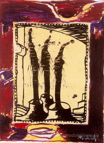 Wir bieten Ihnen eine handgefertigte Reproduktion auf Leinwand des berühmten Kunstwerks 'Terz' von Pierre Alechinsky, aus dem Reproduktionsmuseum.