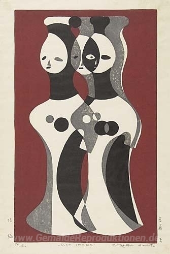Wir bieten Ihnen eine handgefertigte Reproduktion auf Leinwand des berühmten Kunstwerks 'Ton-Bild' von Kiyoshi Saito, aus dem Reproduktionsmuseum.