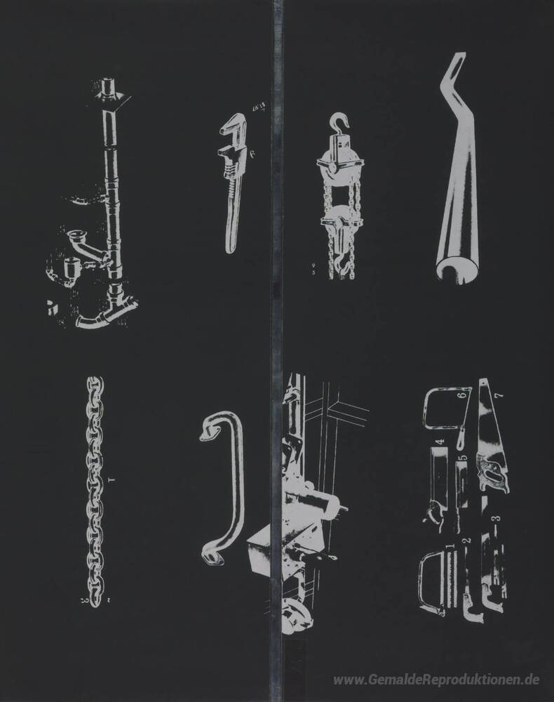 Wir bieten Ihnen eine handgefertigte Reproduktion auf Leinwand des berühmten Kunstwerks 'Tool Box 1' von Jim Dine, aus dem Reproduktionsmuseum.