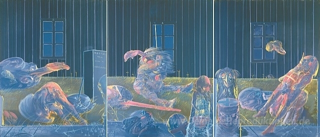 Wir bieten Ihnen eine handgefertigte Reproduktion auf Leinwand des berühmten Kunstwerks 'Triptyque de Narval' von Dado, aus dem Reproduktionsmuseum.