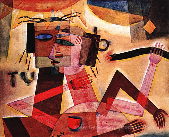 Wir bieten Ihnen eine handgefertigte Reproduktion auf Leinwand des berühmten Kunstwerks 'Tu y yo' von Xul Solar, aus dem Reproduktionsmuseum.