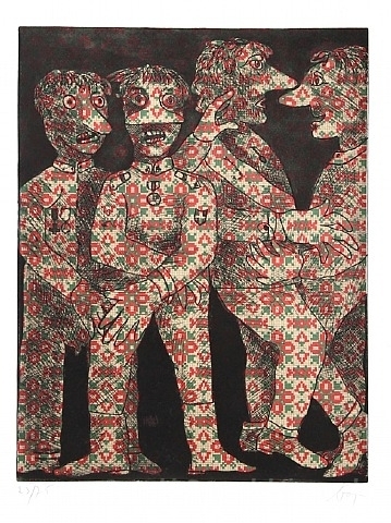 Wir bieten Ihnen eine handgefertigte Reproduktion auf Leinwand des berühmten Kunstwerks 'Untitled (Dancing Figures)' von Enrico Baj, aus dem Reproduktionsmuseum.