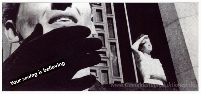 Wir bieten Ihnen eine handgefertigte Reproduktion auf Leinwand des berühmten Kunstwerks 'Untitled (Ihre seeing is believing)' von Barbara Kruger, aus dem Reproduktionsmuseum.