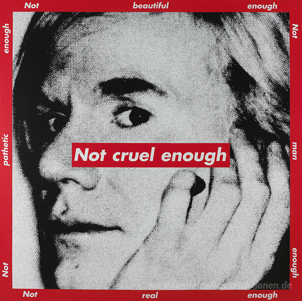 Wir bieten Ihnen eine handgefertigte Reproduktion auf Leinwand des berühmten Kunstwerks 'Untitled (nicht grausam genug)' von Barbara Kruger, aus dem Reproduktionsmuseum.