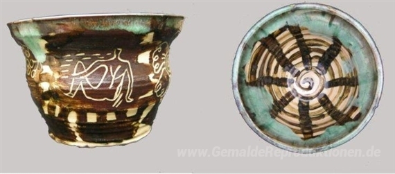 Wir bieten Ihnen eine handgefertigte Reproduktion auf Leinwand des berühmten Kunstwerks 'Vögel, Blumen und Fakten' von Walter Battiss, aus dem Reproduktionsmuseum.