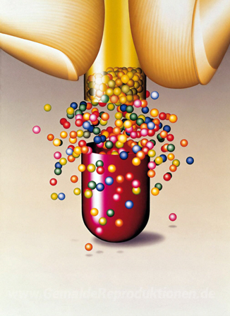 Wir bieten Ihnen eine handgefertigte Reproduktion auf Leinwand des berühmten Kunstwerks 'Vitaminbombe' von Dieter Asmus, aus dem Reproduktionsmuseum.