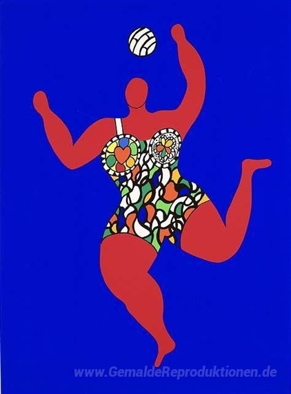 Wir bieten Ihnen eine handgefertigte Reproduktion auf Leinwand des berühmten Kunstwerks 'Volleyball' von Niki de Sainte Phalle, aus dem Reproduktionsmuseum.