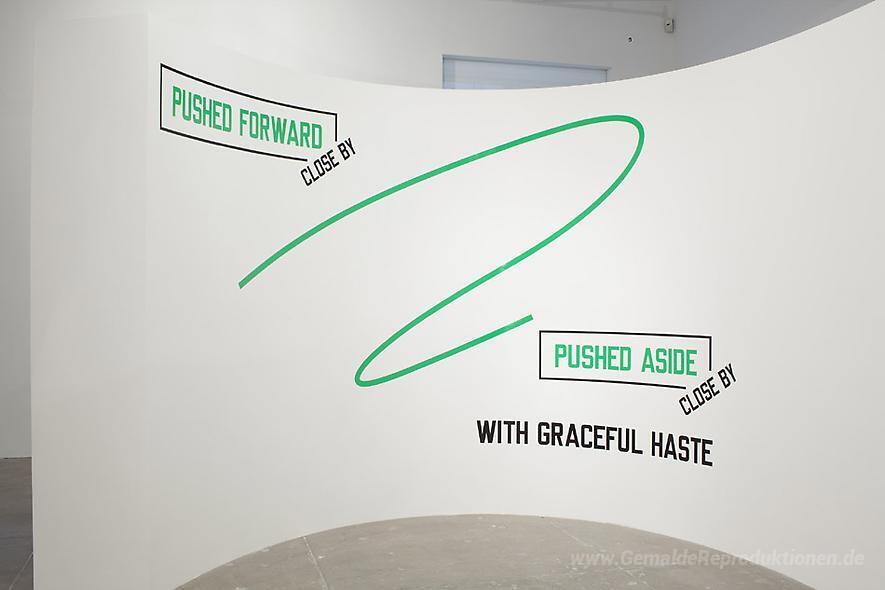 Wir bieten Ihnen eine handgefertigte Reproduktion auf Leinwand des berühmten Kunstwerks 'Vorne geschoben ...' von Lawrence Weiner, aus dem Reproduktionsmuseum.