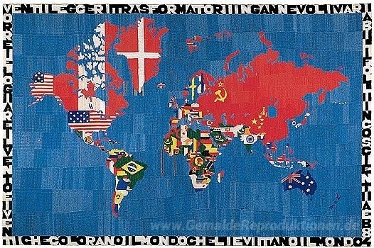 Wir bieten Ihnen eine handgefertigte Reproduktion auf Leinwand des berühmten Kunstwerks 'Vorrei elogiare il vento e i venti che colorano' von Alighiero Boetti, aus dem Reproduktionsmuseum.