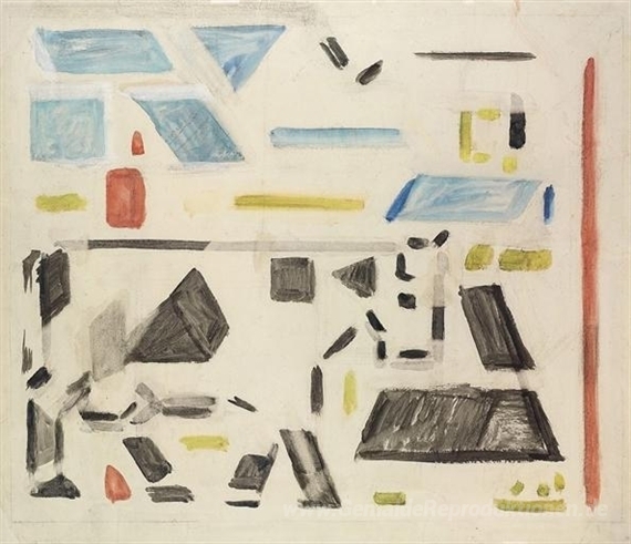 Wir bieten Ihnen eine handgefertigte Reproduktion auf Leinwand des berühmten Kunstwerks 'Vrouw met koe (Frau mit Kuh)' von Bart van der Leck, aus dem Reproduktionsmuseum.