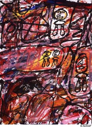 Wir bieten Ihnen eine handgefertigte Reproduktion auf Leinwand des berühmten Kunstwerks 'Website mit vier Zeichen' von Jean Dubuffet, aus dem Reproduktionsmuseum.