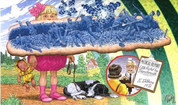 Wir bieten Ihnen eine handgefertigte Reproduktion auf Leinwand des berühmten Kunstwerks 'Wortspiel' von Robert Williams, aus dem Reproduktionsmuseum.
