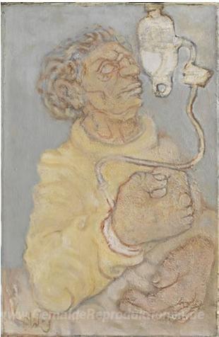 Wir bieten Ihnen eine handgefertigte Reproduktion auf Leinwand des berühmten Kunstwerks 'Zieh-Schmerz' von Abidin Dino, aus dem Reproduktionsmuseum.