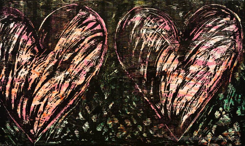 Wir bieten Ihnen eine handgefertigte Reproduktion auf Leinwand des berühmten Kunstwerks 'Zwei Herzen in einem Wald' von Jim Dine, aus dem Reproduktionsmuseum.