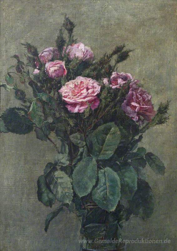 Wir bieten Ihnen eine handgefertigte Reproduktion auf Leinwand des berühmten Kunstwerks 'A Bunch of London Market Garden Moss Roses' von Alfred Parsons, aus dem Reproduktionsmuseum.