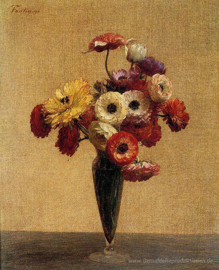 Wir bieten Ihnen eine handgefertigte Reproduktion auf Leinwand des berühmten Kunstwerks 'Anemonen und Buttercups' von Henri Fantin-Latour, aus dem Reproduktionsmuseum.