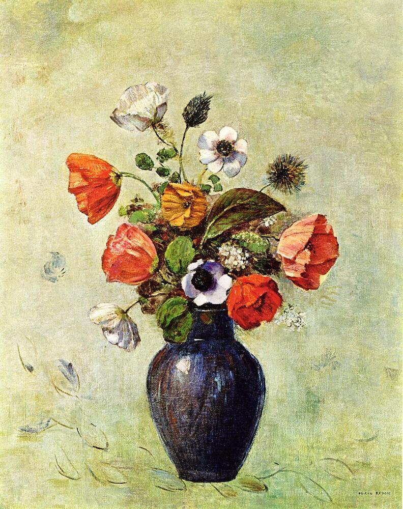 Wir bieten Ihnen eine handgefertigte Reproduktion auf Leinwand des berühmten Kunstwerks 'Anemonen und Mohnblumen in einer Vase' von Odilon Redon, aus dem Reproduktionsmuseum.