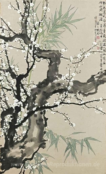 Wir bieten Ihnen eine handgefertigte Reproduktion auf Leinwand des berühmten Kunstwerks 'Bambus und Pflaume blüht' von Xu Beihong, aus dem Reproduktionsmuseum.