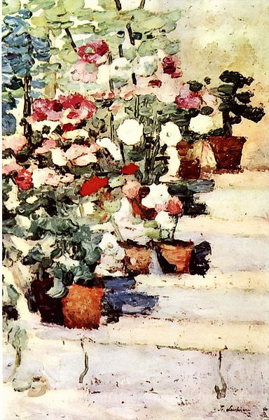 Wir bieten Ihnen eine handgefertigte Reproduktion auf Leinwand des berühmten Kunstwerks 'Blumen auf der Treppe' von Stefan Luchian, aus dem Reproduktionsmuseum.