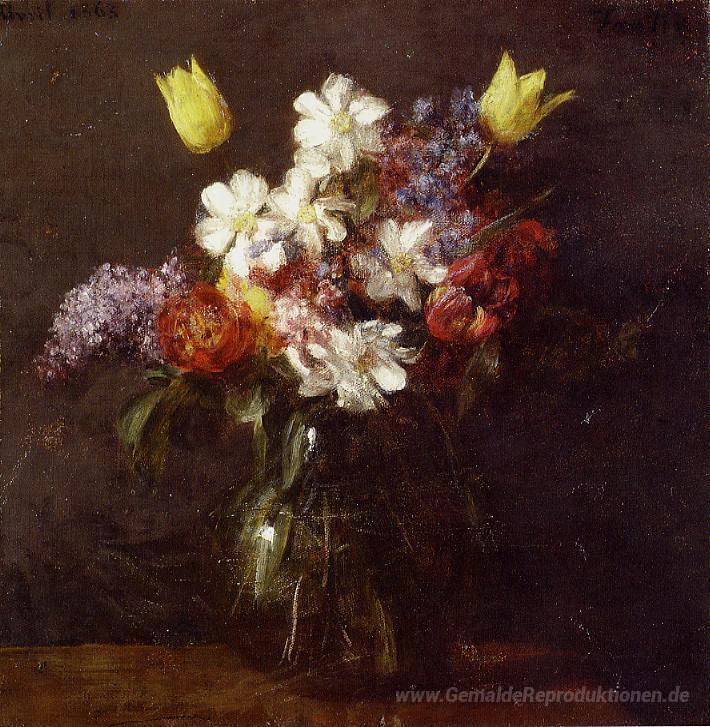 Wir bieten Ihnen eine handgefertigte Reproduktion auf Leinwand des berühmten Kunstwerks 'Blumen' von Henri Fantin-Latour, aus dem Reproduktionsmuseum.