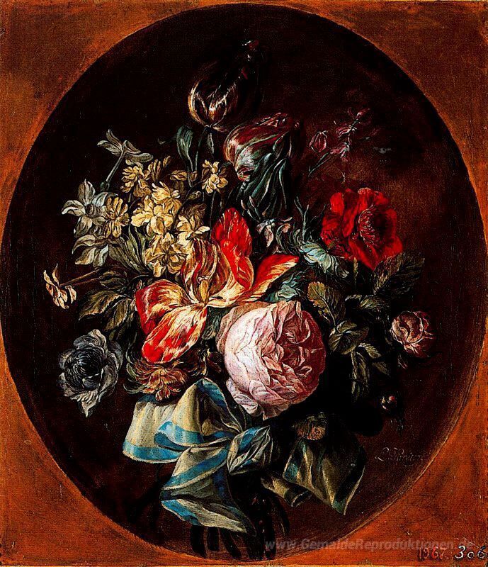 Wir bieten Ihnen eine handgefertigte Reproduktion auf Leinwand des berühmten Kunstwerks 'Blumen' von Luis Paret y Alcazar, aus dem Reproduktionsmuseum.