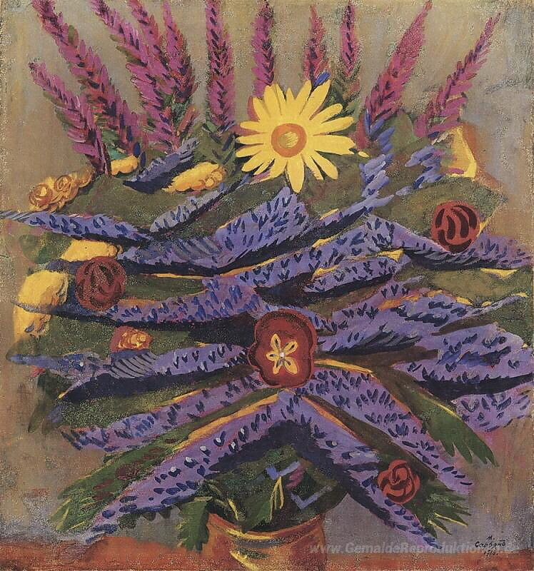 Wir bieten Ihnen eine handgefertigte Reproduktion auf Leinwand des berühmten Kunstwerks 'Blumen' von Martiros Saryan, aus dem Reproduktionsmuseum.