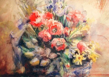 Wir bieten Ihnen eine handgefertigte Reproduktion auf Leinwand des berühmten Kunstwerks 'Blumen' von Asgrimur Jonsson, aus dem Reproduktionsmuseum.
