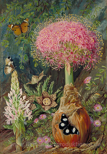 Wir bieten Ihnen eine handgefertigte Reproduktion auf Leinwand des berühmten Kunstwerks 'Buphane toxicara und andere Blumen von Grahamstown' von Marianne North, aus dem Reproduktionsmuseum.