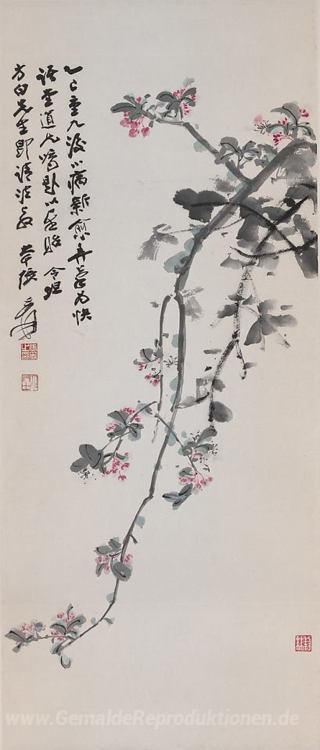 Wir bieten Ihnen eine handgefertigte Reproduktion auf Leinwand des berühmten Kunstwerks 'Crabapple Blüten' von Chang Dai-chien, aus dem Reproduktionsmuseum.