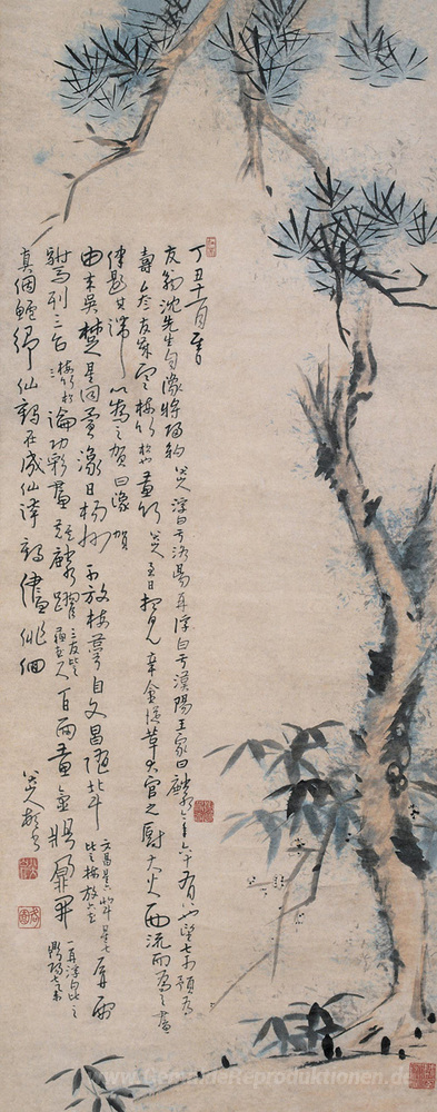 Willkommen in der faszinierenden Welt der Ölgemälde, in der jedes Kunstwerk eine eigene Geschichte erzählt. Unsere exquisite Kollektion umfasst Meisterwerke von renommierten Künstlern wie Bada Shanren, dessen Gemälde "Drei Freunde des Winter" die besonderen Aspekte von Natur und Zusammengehörigkeit eindrucksvoll einfängt. Bada Shanren war ein herausragender Künstler der Ming-Dynastie, der durch seine einzigartige Technik sowie seine tiefgehenden Themen besticht.