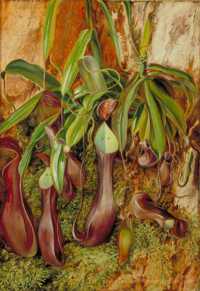 Wir bieten Ihnen eine handgefertigte Reproduktion auf Leinwand des berühmten Kunstwerks 'Ein Borneo Kannenpflanze, Sarawak, Borneo' von Marianne North, aus dem Reproduktionsmuseum.