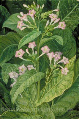 Wir bieten Ihnen eine handgefertigte Reproduktion auf Leinwand des berühmten Kunstwerks 'Gemeinsame Tabak' von Marianne North, aus dem Reproduktionsmuseum.