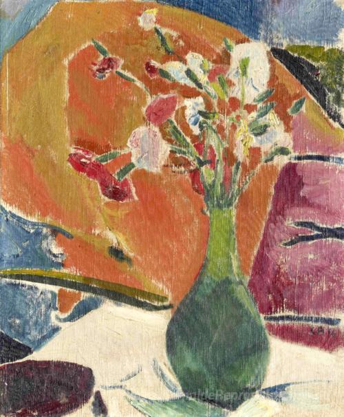 Wir bieten Ihnen eine handgefertigte Reproduktion auf Leinwand des berühmten Kunstwerks 'Nelken Auf orange' von Cuno Amiet, aus dem Reproduktionsmuseum.