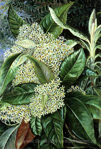 Wir bieten Ihnen eine handgefertigte Reproduktion auf Leinwand des berühmten Kunstwerks 'Olearia argophylla' von Marianne North, aus dem Reproduktionsmuseum.