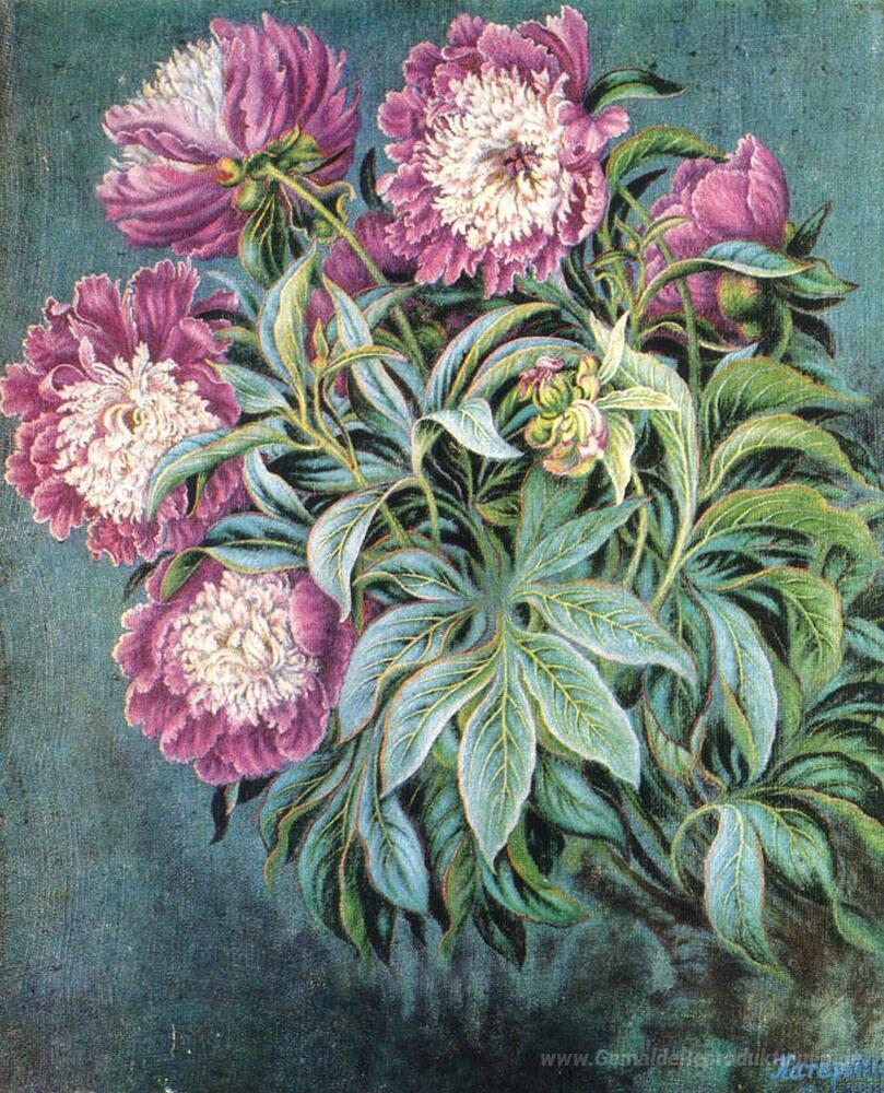 Wir bieten Ihnen eine handgefertigte Reproduktion auf Leinwand des berühmten Kunstwerks 'Pfingstrosen' von Kateryna Bilokur, aus dem Reproduktionsmuseum.