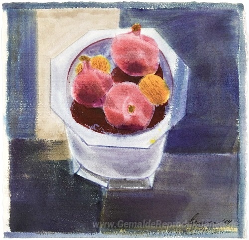 Wir bieten Ihnen eine handgefertigte Reproduktion auf Leinwand des berühmten Kunstwerks 'Stillleben mit Schüssel Granatäpfel' von Morris Graves, aus dem Reproduktionsmuseum.
