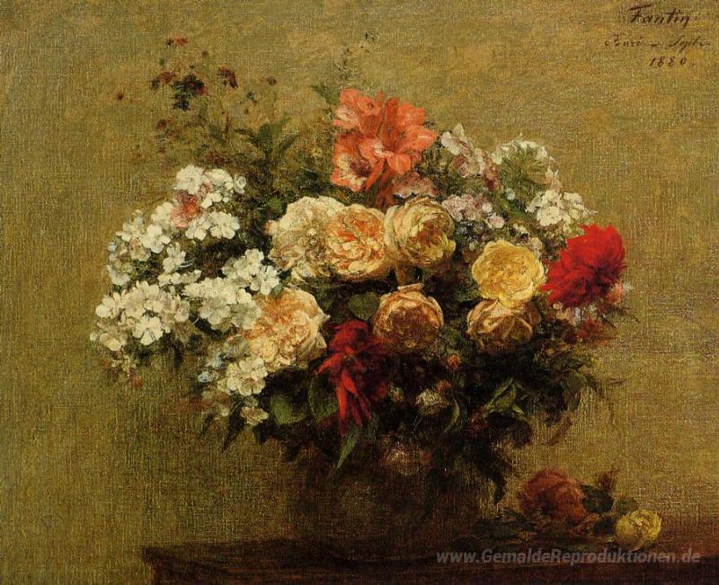Wir bieten Ihnen eine handgefertigte Reproduktion auf Leinwand des berühmten Kunstwerks 'Summer Flowers' von Henri Fantin-Latour, aus dem Reproduktionsmuseum.