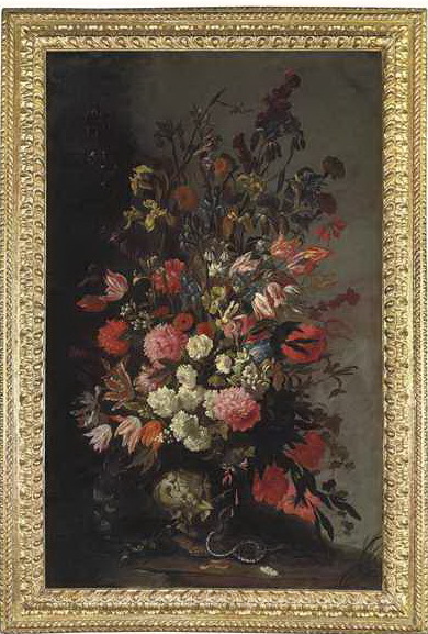 Wir bieten Ihnen eine handgefertigte Reproduktion auf Leinwand des berühmten Kunstwerks 'Tulpen, Lilien, Schwertlilien und andere Blumen in einem geformt' von Mario Nuzzi, aus dem Reproduktionsmuseum.