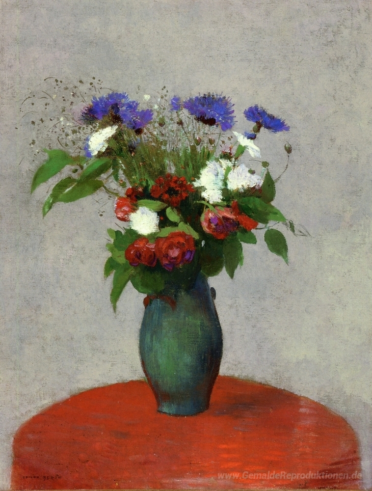 Willkommen in der faszinierenden Welt der Ölgemälde, wo jedes Kunstwerk eine eigene Geschichte erzählt. Unter den bemerkenswerten Meistern finden wir Odilon Redon, dessen außergewöhnliches Talent in seinem Werk Vase mit Blumen auf einer roten Tischdecke zum Ausdruck kommt. Redons charakteristischer Stil, geprägt von symbolistischen Elementen und lebendigen Farben, schafft eine harmonische Verbindung zwischen Natur und Emotion.