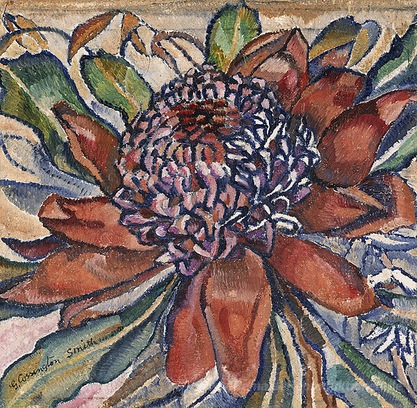 Wir bieten Ihnen eine handgefertigte Reproduktion auf Leinwand des berühmten Kunstwerks 'Waratah' von Grace Cossington Smith, aus dem Reproduktionsmuseum.