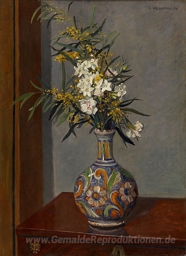 Wir bieten Ihnen eine handgefertigte Reproduktion auf Leinwand des berühmten Kunstwerks 'Weiße Blumen in einer Vase dekoriert' von Felix Vallotton , aus dem Reproduktionsmuseum.