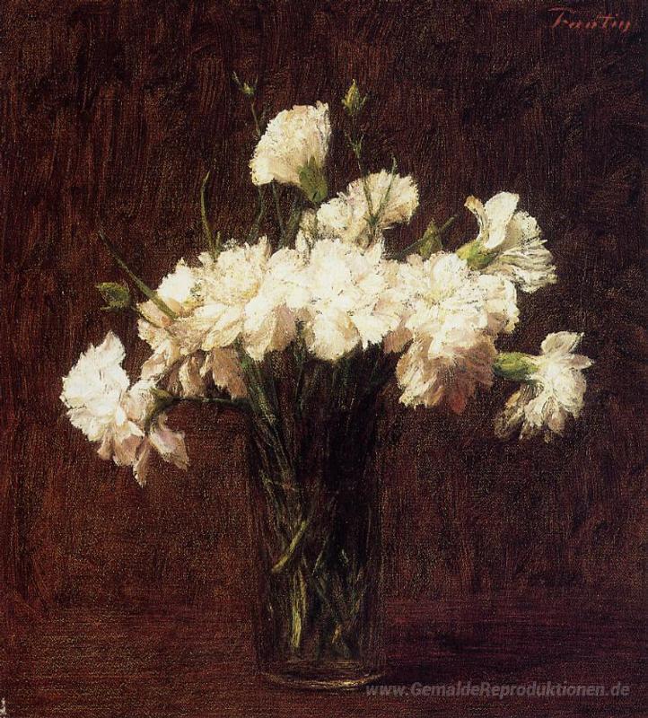 Wir bieten Ihnen eine handgefertigte Reproduktion auf Leinwand des berühmten Kunstwerks 'Weiße Gartennelken' von Henri Fantin-Latour, aus dem Reproduktionsmuseum.