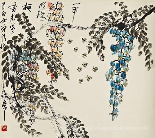 Wir bieten Ihnen eine handgefertigte Reproduktion auf Leinwand des berühmten Kunstwerks 'Wisteria' von Ding Yanyong, aus dem Reproduktionsmuseum.