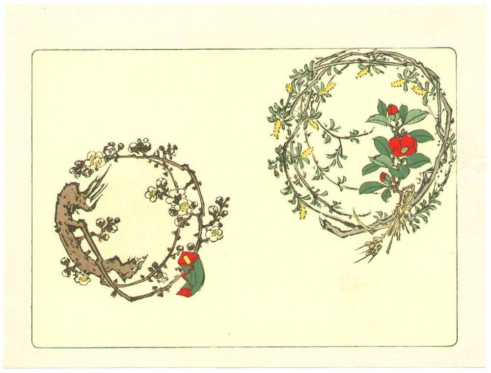 Die Verwendung von lebendigen Farben und sanften Pinselstrichen in Zwei Kränze - Vergleich von Blumen erzeugt eine Atmosphäre der Ruhe und Erhabenheit. Dieses Gemälde ist nicht nur ein Blickfang, sondern auch ein Ausdruck von Naturverbundenheit, der jedem Raum eine harmonische und inspirierende Ausstrahlung verleiht. Lassen Sie sich von der Kunstfertigkeit Shibata Zeshins und der Magie seiner Werke verzaubern und bringen Sie zeitlose Eleganz in Ihr Zuhause.