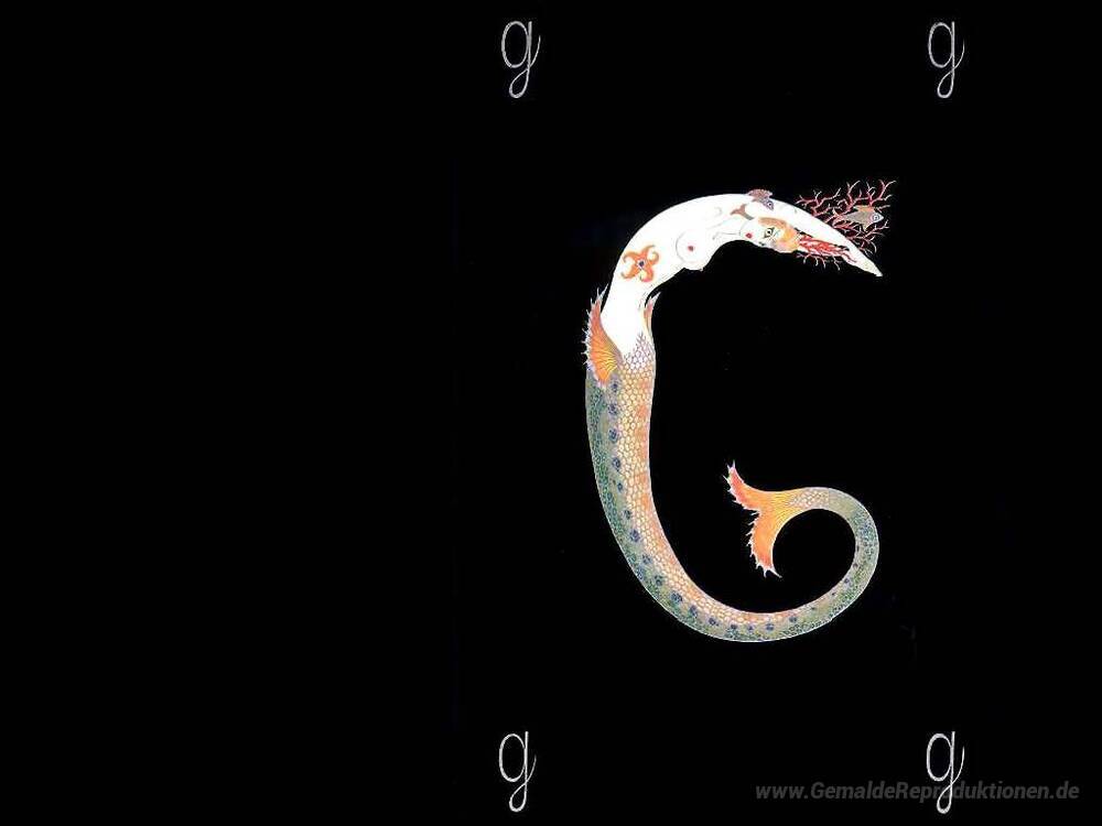 Wir bieten Ihnen eine handgefertigte Reproduktion auf Leinwand des berühmten Kunstwerks 'Alphabet G' von Erte, aus dem Reproduktionsmuseum.