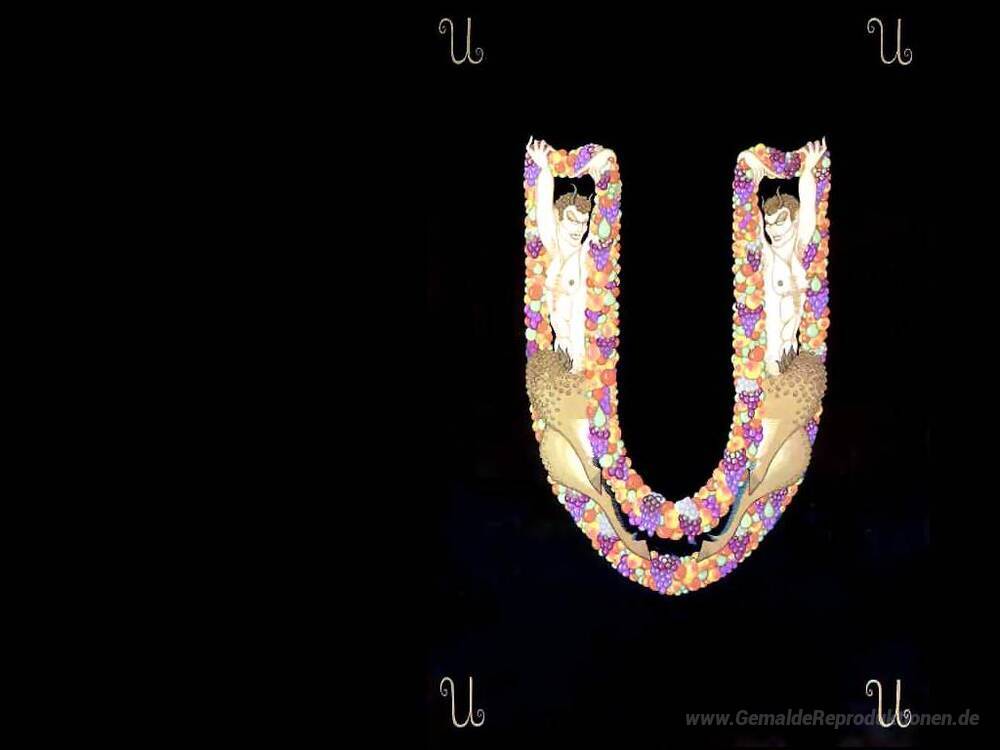 Wir bieten Ihnen eine handgefertigte Reproduktion auf Leinwand des berühmten Kunstwerks 'Alphabet U' von Erte, aus dem Reproduktionsmuseum.