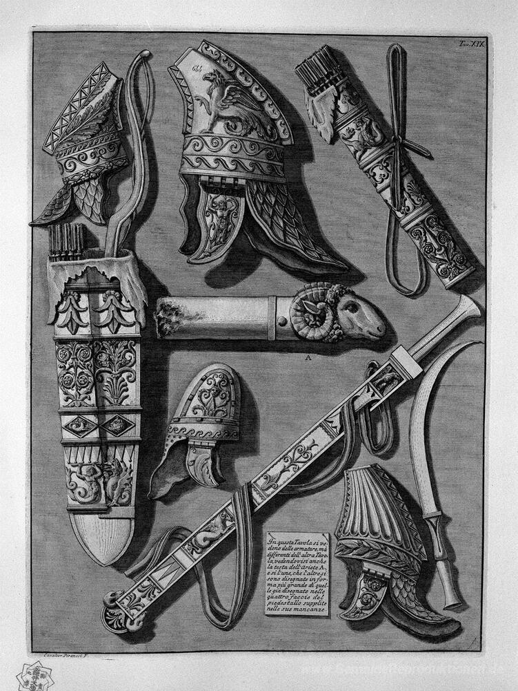 Willkommen in der Welt der Ölgemälde, wo Leidenschaft und Kreativität in jeder Pinselstrich lebendig werden. Unsere sorgfältig ausgewählten Werke bereichern jeden Raum und verleihen ihm eine individuelle Atmosphäre. Eines dieser Meisterwerke ist Andere Waffen und Rüstungen, die sich von der obigen Tabelle, erschaffen von dem renommierten Künstler Giovanni Battista Piranesi. Piranesi, bekannt für seine faszinierenden Darstellungen antiker Architektur und Ruinen, kombiniert in diesem Werk technische Präzision mit einem tiefen Verständnis für historische Kontexte.