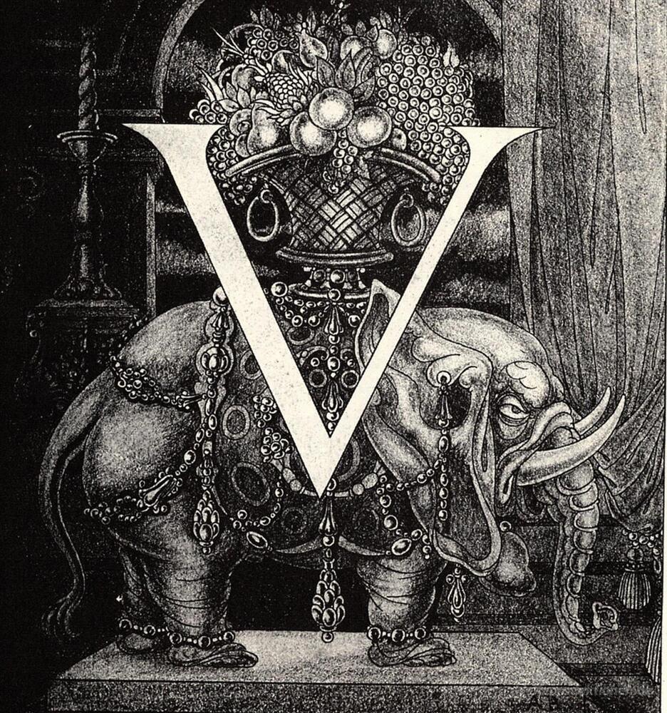 Wir bieten Ihnen eine handgefertigte Reproduktion auf Leinwand des berühmten Kunstwerks 'Anfangsbuchstabe "V" zu Volpone' von Aubrey Beardsley, aus dem Reproduktionsmuseum.